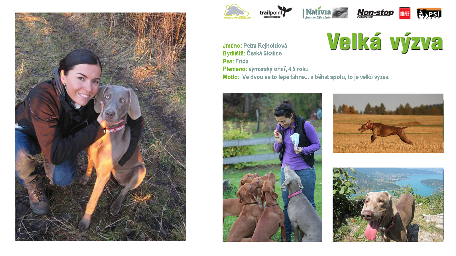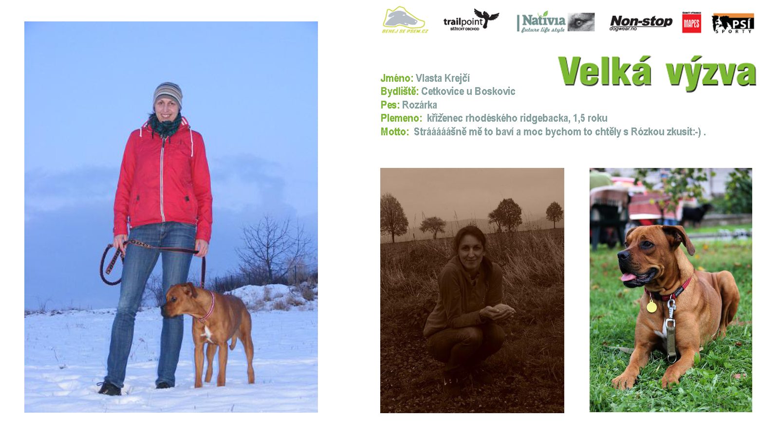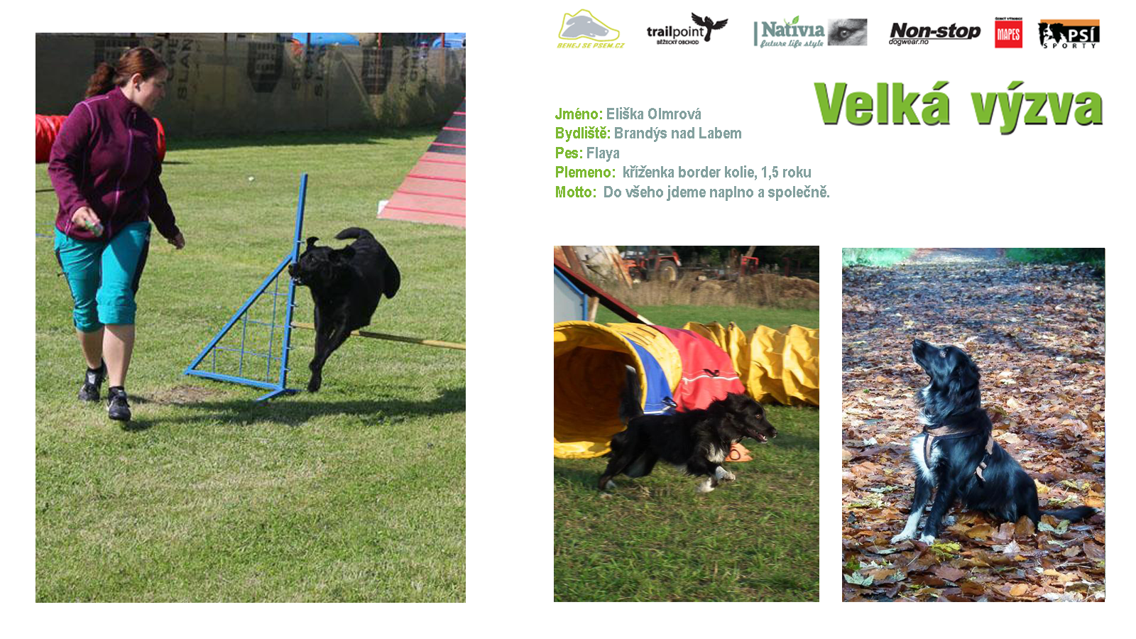 Prozatím Vám nabízíme medailonky finalistů na jednom místě společně s jejich čtyřnohým parťákem a mottem :-)